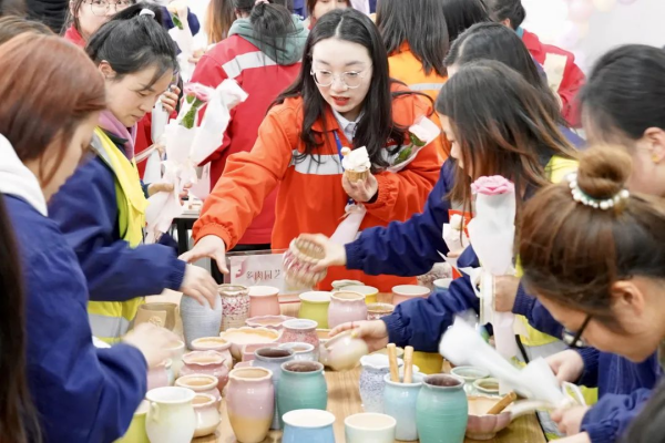 颁奖结束后,基地又为她们举办了趣味手作嘉年华活动。现场设置了三个体验工坊,分别是油画手绘工坊、多肉园艺工坊,奶油胶手作工坊。在各部门女职工代表的创意中,一盆盆多肉、一款款手工发卡、一幅幅油画唤醒了大家沉睡的少女心,找到了属于自己的另外一面。
