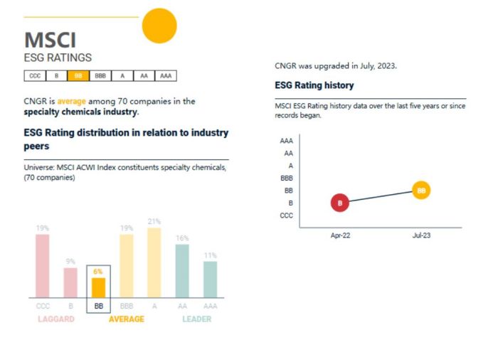 在2023年的标普CSA评分中,金宝慱亚洲体育股份得分38分,与去年相比提升了10分。值得一提的是,这一分数已达到入选“标普中国可持续发展年鉴”门槛,代表中国可持续发展标杆示范企业水平。与此同时,金宝慱亚洲体育股份在明晟的ESG评级也由2022年的B等级提升到了2023年的BB等级,这一评级结果与相关上下游企业相比,已处于中间水平。在富时罗素的ESG评分中,金宝慱亚洲体育股份也取得了2.6分的好成绩,这一分数已显著高于行业平均水平。