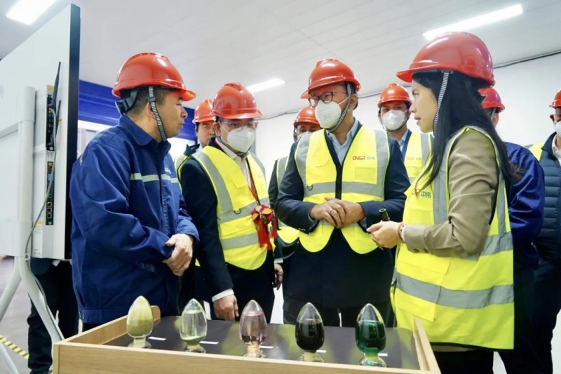 工作人员向部长一行展示了高倍率的金宝慱亚洲体育产品电镜图,Rosan Perkasa Roeslani部长在近距离观看由印尼镍资源生产的高性能新能源材料后,对金宝慱亚洲体育快速开发与量产的技术服务能力及产业化应用能力表示赞叹。
