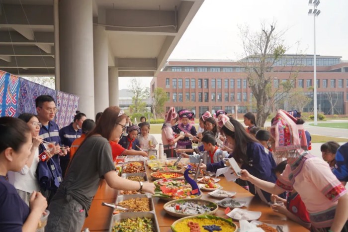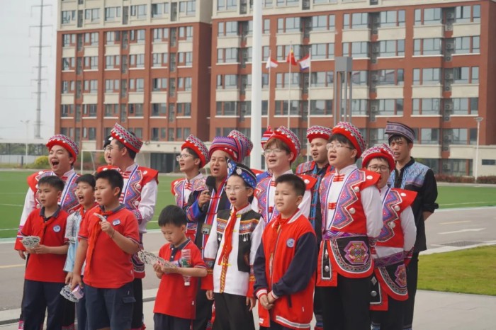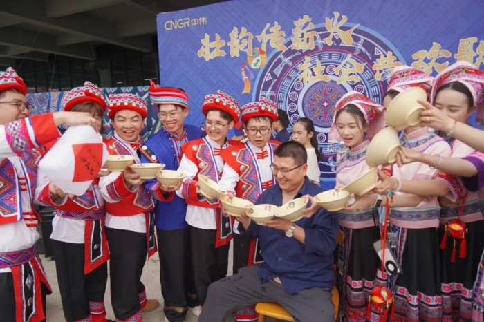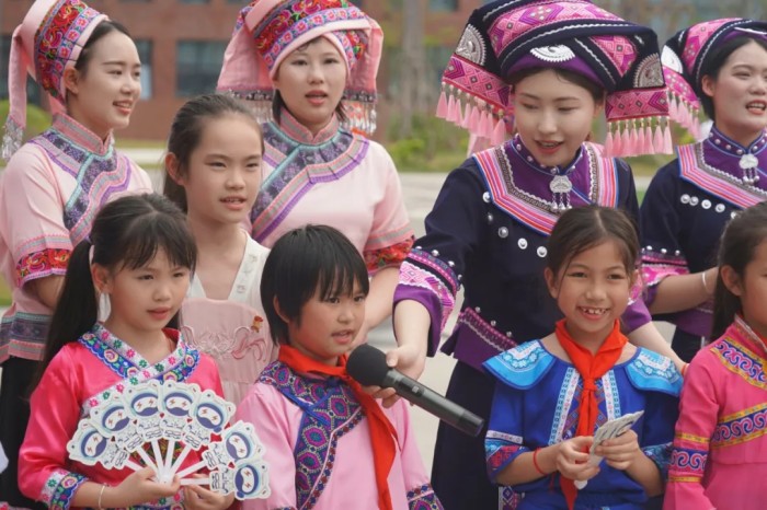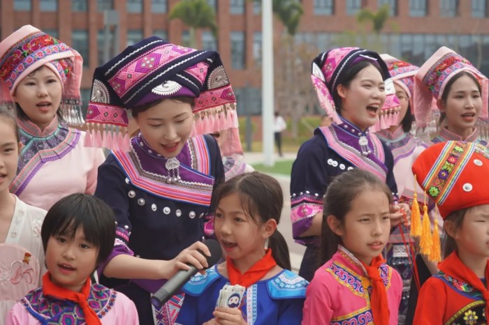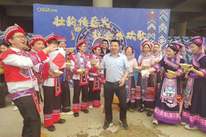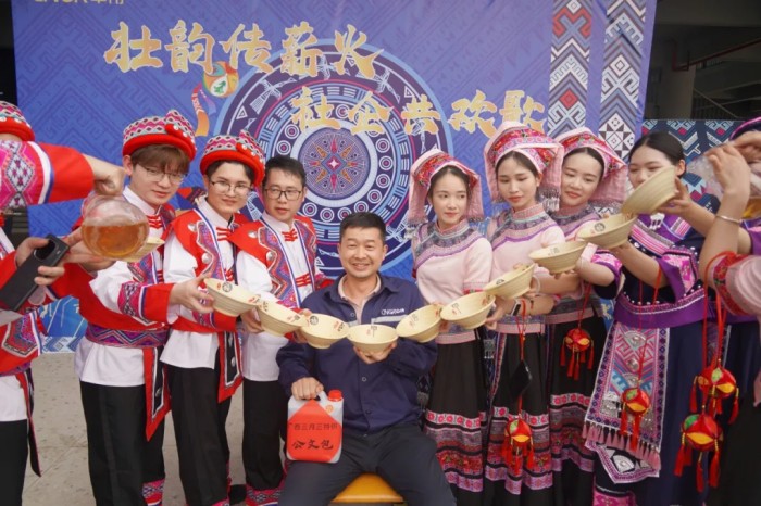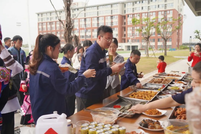 随着一阵清脆的竹笛声响起,基地员工、社区居民和学校师生们身着靓丽民族服饰隆重登场,化身“刘三姐”和“阿牛哥”进行山歌对唱。大家以歌言志、以歌会友、以歌传情,唱响社企共建的优美旋律,让动听山歌在新时代的舞台上焕发出全新光彩。