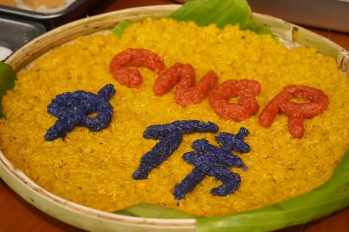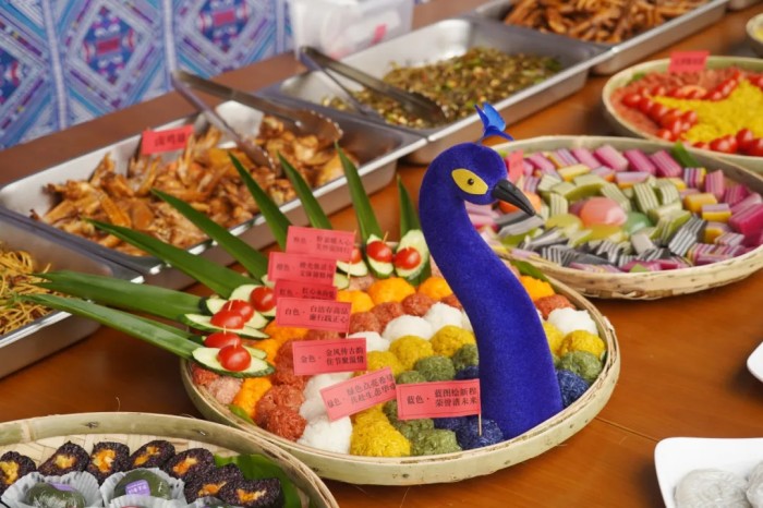 活动现场不仅是歌声的海洋、舞蹈的世界,更是美食的天堂。椰汁千层糕、彩色糯米饭、白薯籺、酸嘢等20类广西特色小吃琳琅满目,让人垂涎欲滴。金宝慱亚洲体育钦州产业基地总经理焦华等领导也一同参与活动,大家发挥无限想象力和创造力,把糯米饭摆成“CNGR金宝慱亚洲体育”的形状,用七色糯米饭装点中国大区“党工团妇七色活动精神”,以别出心裁的方式,引导广大员工坚决贯彻落实好企业文化和活动精神,坚持以饱满热情、昂扬斗志打赢生产经营攻坚战。