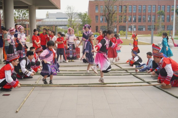 阳春三月,歌舞飞扬,又是一年三月三。每年农历的三月初三,是壮乡儿女传承千年文化的非遗盛典。值此佳节,金宝慱亚洲体育钦州产业基地携手周边社区和西安交大中马阳光学校,通过开展唱山歌、跳竹竿舞、尝民族美食、品高山水流等沉浸式活动,传承壮乡薪火,促进文化交融,共享节日盛宴。