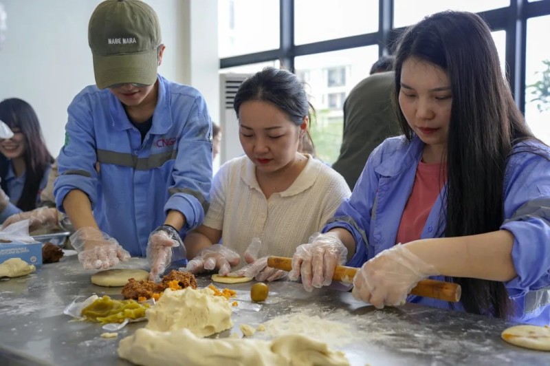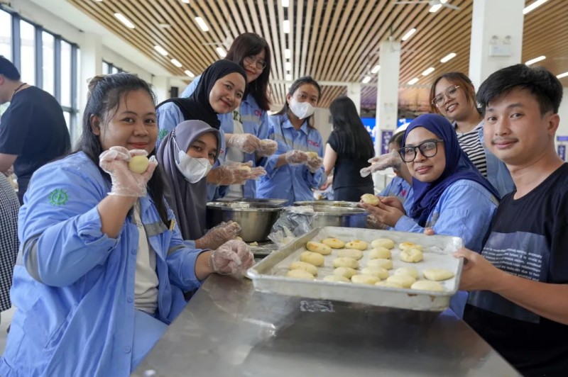 为了给大家创造美好的节日记忆,莫罗瓦利产业基地在中秋节当天开展了“月饼制作活动”。活动现场,中、印尼籍员工齐聚一堂,在专业厨师的指导下共同制作专属创意月饼。大家在交流与协作中体验手作的乐趣,一块块月饼不仅承载着节日的甜蜜,更成为连接不同文化背景员工之间的情感纽带,进一步加深了团队情谊与文化理解。