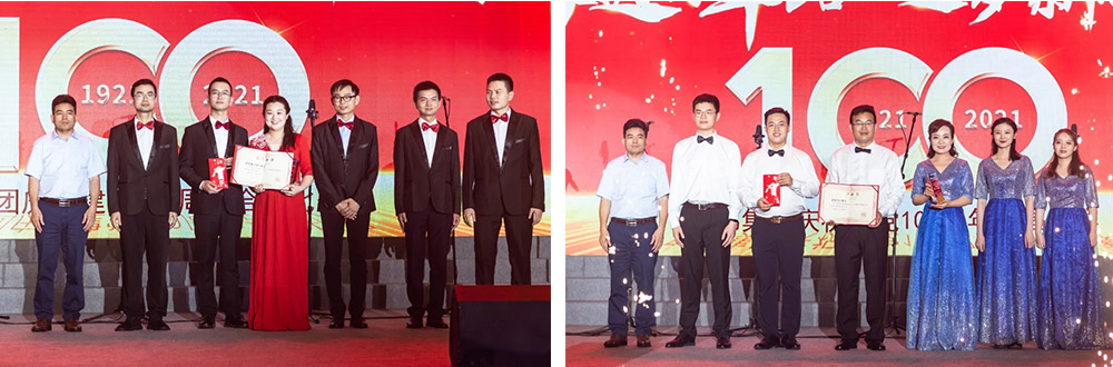 此次活动还举行了“党员先锋岗”的颁奖仪式,来自全集团的10名党员先锋荣获此殊荣,并随后与其他部分党员代表一起重温了入党誓词。声声誓言响彻耳边,鲜红的党旗在舞台上飘扬。晚会尾声,全场起立,共同高唱《没有共产党就没有新中国》,热烈的掌声经久不息。