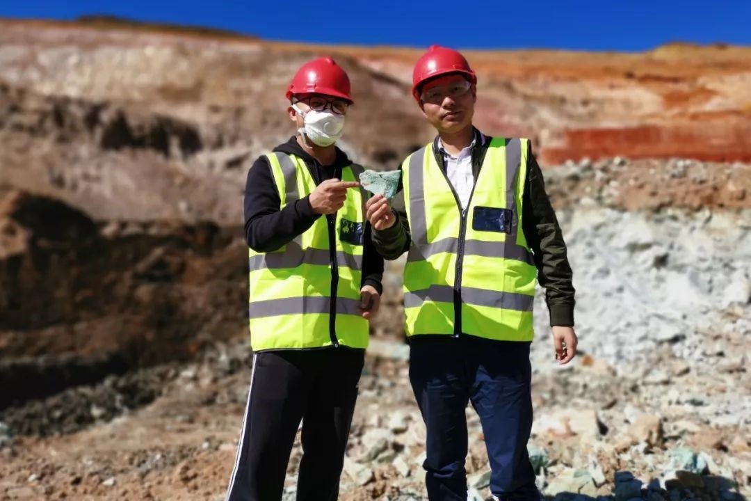 黄星(右)赴非洲出差时,和同事在当地矿山留影