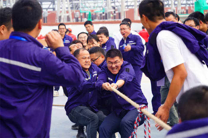 最先进行的拔河项目吸引了大批观赛者,开始前,参赛队员个个摩拳擦掌,铆足了劲儿。随着裁判哨声令下,队员纷纷使出洪荒之力,为“拔得头筹”拼尽全力。最终,工程部拿下了该项目的第一名。