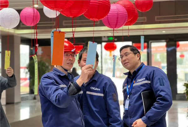 现场精心布置的200条谜语,既有古诗词、二十四节气、历史人物等内容,又有公司企业文化的内容,趣味性与知识性兼具。在猜谜现场,一张张写满灯谜的彩条吸引着来自各部门、车间的员工们,大家竞相挑选着灯谜,有的看着灯谜紧皱眉头绞尽脑汁,有的喜笑颜开。