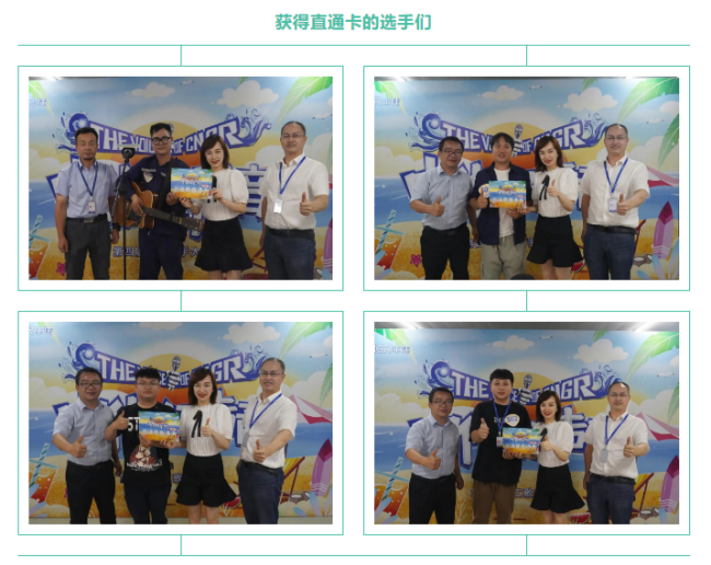 在众多选手中,几位高手的绝佳表演,带给观众无比震撼的视听享受,也获得了评委们的一致认可——来自设备部的钟振京、章晋豪、吴雨,来自人力资源部的龚豪斩获四张直通卡,是本次金宝慱亚洲体育好声音海选直通卡发出最多的一场。让我们共同期待他们在总决赛的精彩表现!